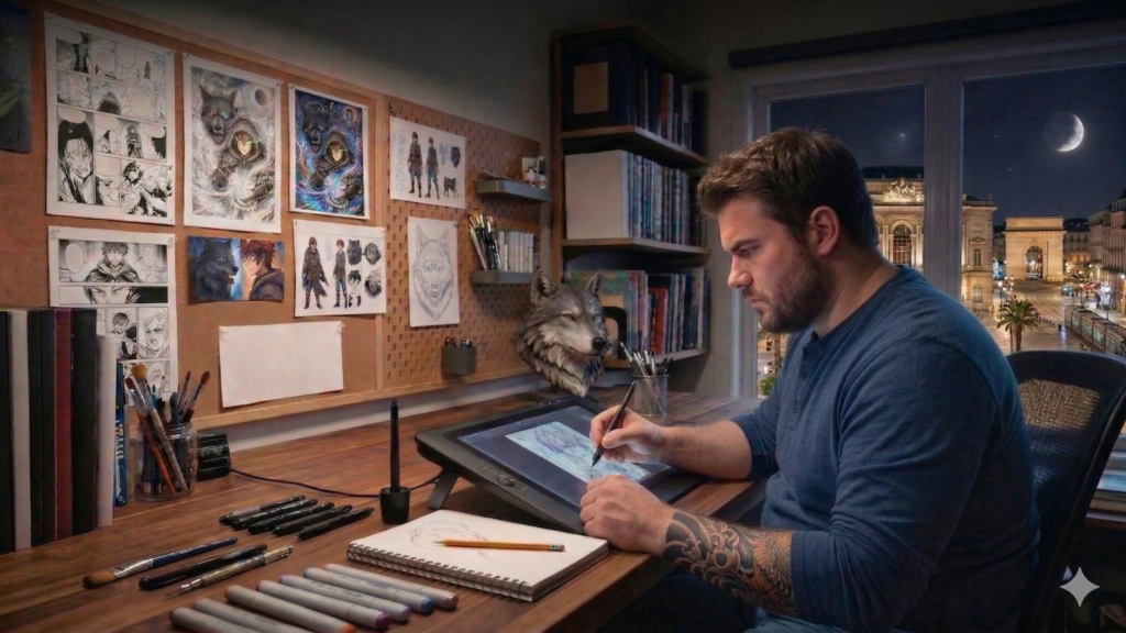 Je ne me considère pas comme un auteur, mais plutôt comme un explorateur de mondes. Ce site est mon carnet de voyage. J’y dépose mes récits, mes planches et mes idées, avec pour seule ambition de vous faire voyager avec moi. Si mes histoires vous font vibrer, ne serait-ce qu’une minute, alors mon pari est gagné. »